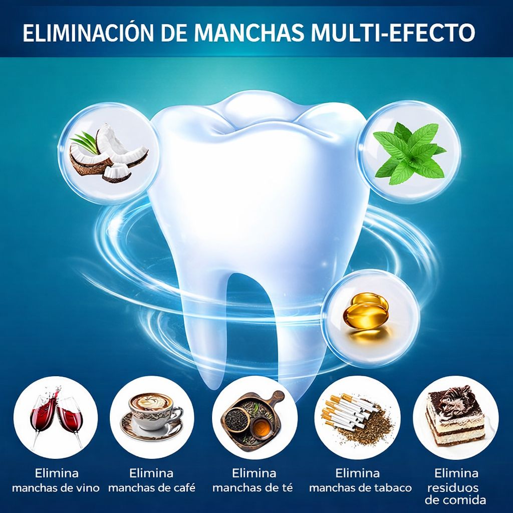 Sabah kahvesi, akşam şarabı mı? Tutkularınızın parlaklığınızı köreltmesine izin vermeyin. Gelişmiş formülümüz, kahve, tütün, çay ve kırmızı şarap lekelerini anında gidermek için derinlemesine nüfuz eder. Alışkanlıklarınızı koruyun, doğal beyazlığınızı geri kazanın. - Café por la mañana, vino por la noche? No dejes que tus pasiones apaguen tu brillo. Nuestra fórmula avanzada penetra profundamente para eliminar años de manchas de café, tabaco, té y vino tinto de forma instantánea. Mantén tus hábitos, recupera tu blanco natural.